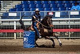 Lexxie Duggan rides across the rodeo arena in Coulee City during her barrel racing run …