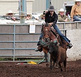 Aubree Skone eyes in her target during a roping event. Skone has been involved in …