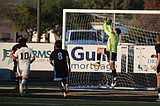 Royal junior Alex Arceo, in neon green, leaps up to save the ball on a …