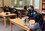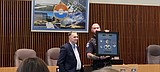 A Moses Lake police officer presents a retirement plaque from the Moses Lake Police Officers …