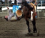 Casey McCarthy/ Columbia Basin Herald A cowboy is flung off during the bull-riding competition on …