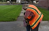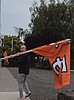 Superintendent Ken Murray helps put up flags on Basin Street on the first day of …