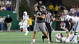 The Eagles’ Read Sunn (26) celebrates making tackle in the backfield against Portland State on …