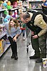 Garrett Fletcher of the Moses Lake Fire Department zips up a brand-new coat for Abigail …