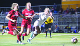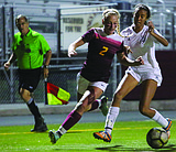 Warden midfielder Savanna Edson chases the ball with a Quincy defender early in the season. …