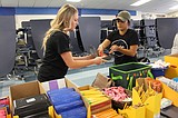 Cheryl Schweizer/For The Sun Tribune Volunteers help pass out school supplies during Back 2 School …