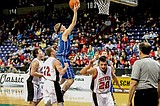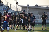 Sophia Rodriguez, at 5-10 the tallest member of the team, tries to go up for …