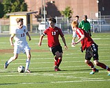 Moses Lake forward Johnny Cortez races past a Gonzaga Prep defender during the Chiefs' 5-2 …