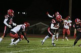 A Huskies football player runs through traffic during a game against Toppenish last season.