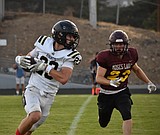 Tigers’ senior Wyatt Schluckebier runs with the ball toward the sideline during the varsity team’s …