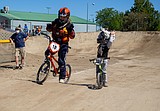 Bikes dip up and down on the dirt ramps of the Moses Lake BMX track …