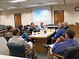 Grant PUD commissioners and staff discuss the district's hatchery programs Monday.