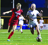 Connor Vanderweyst/Columbia Basin Herald Moses Lake forward Madi Krogh (2) races to the ball next …