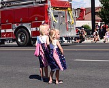 Brixley and Josie Phillips, ages 4 and 2, wait for the next rain of candy …