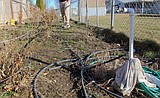 Unhooked for now, Dave Ruffin's drip irrigation system runs down his garden behind his home …