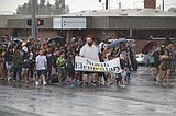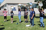 Joseph Allen, an employee with Lakeside Disposal, prepares to heave a kiddie pool full of …