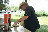 Greg Ringelstetter cleans part of his catch after a morning of fishing at Potholes Reservoir …