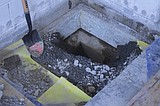 A look underneath the Groff Elementary gym floor. There was moisture found under the floor, …
