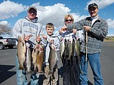 Dave Shultz of Moses Lake shows his day’s cacth of walleye, perch and bass from …