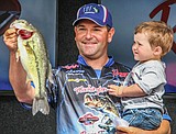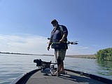 Moses Lake Carp Classic organizer Ty Swartout stands on the bow of his bass fishing …