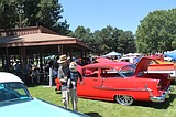 Simon, right, and his friend/transportation Cecil Aston of Selah look over the cars on display …