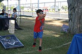 Jose Marroquin plays a beanbag toss game during National Night Out in Mattawa Aug. 2.