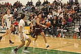 Wahluke’s Kacy Hirai (2) drives to the basket during the Warriors’ 71-53 loss to Quincy …