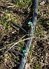 A close-up look at Dave Ruffin's drip irrigation system running through his garden behind his …