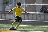Jesus Carrillo gains possession of the ball midfield and uses his footwork to push toward …