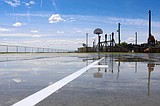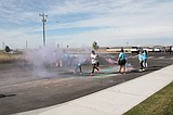 A runner nears the finish line in a cloud of color at the Columbia Basin …