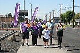 Columbia Basin Walk to End Alzheimer’s participants walk down Sharon Avenue in Moses Lake Sunday.