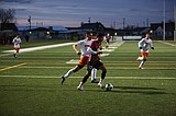 MLCA/CCS freshman Max Gulenko (20) blocks a shot in the first half against Columbia Adventist.