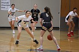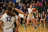 Warden freshman Makenna Klitzke (21) looks toward the basket in the first half against Columbia …