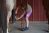 Maggie Winona, 8, helps get a horse ready for Miss Rodeo Washington Lexy Hibbs to …