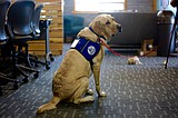 Valor, a two-year-old yellow Labrador, is in the final stages of training to become a …