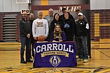 Meagan Karstetter, seated, signs her letter of intent with Carroll College on Tuesday. With her, …