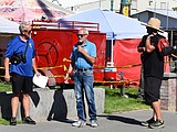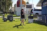 Sam Harris installs the fences around the Spaceburger booth, run by Moses Lake Lioness, Monday. …