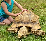 A child pets one of April Jackson’s tortoises, Spongebob Scalepants. Jackson said it is important …