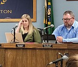 George Mayor Gerene Nelson addresses the meeting of the George City Council Tuesday. From left: …