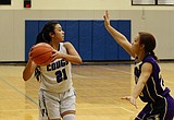 Casey McCarthy/Columbia Basin Herald Brecka Erdmann takes the shot in the fist half for the …