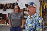 Trudie Roy (left) and Jereme Roy of Roy’s Custom Leather Work and Repair, in his …