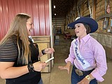 Heidi Tracy (right) finished explaining to Miss Rodeo Washington Lexy Hibbs about some of the …