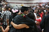 Wahluke High School graduates rose from their seats to pass out roses to loved ones …