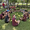 Mavericks players sit around in a circle on the EWU campus with other teams at …