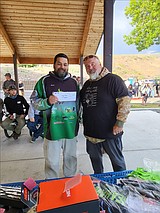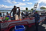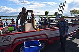 Alex Mendoza, left, accepts the prize for the 10 biggest fish by weight at the …