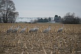 Sandhill cranes make a dinner stop in a field south of Othello in March 2021. …