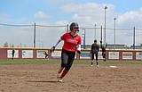Othello High School's Ori Vasquez makes a dash toward third base as the Royal High …