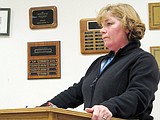Kelley Hobbes speaks to the Quincy City Council about the city's recycling program.