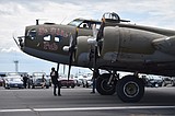 Pilot Shawn Mulligan stands in front of a B-17 Flying Fortress, the primary U.S. bomber …