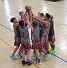 Moses Lake Tribe players smile and cheer on the court with the first-place trophy from …